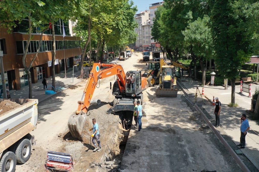 “1. Etap Yol ve Tretuvar Düzenleme Çalışmaları” nedeniyle trafiğe kapatılan Alaaddin Parkı çevresinde çok sayıda personelden oluşan ekiplerce altyapı ve üstyapı çalışmaları gerçekleştiriliyor.