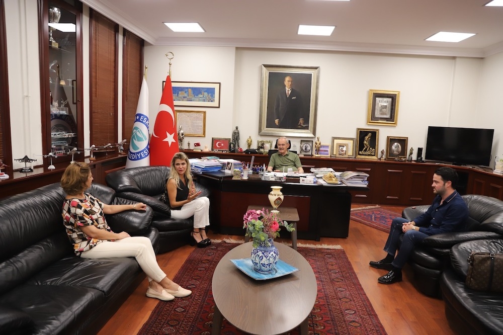 Başkan Büyükerşen, anne-baba okulu olarak da bilinen, anne baba ve adaylarına gebelik öncesi dönemden ilkokul dönemine kadar ihtiyaç duyabilecekleri bilgileri ve hizmetleri, bütüncül bir yaklaşımla branşlarında uzmanlaşmış tıp doktorları ve diğer uzmanlar aracılığıyla sunan bir platform olan WeParents’in kurucusu Selin Çelik Şengöz ve kurucu ortaklarından Tamer Şengöz’ü makamında ağırladı. WeParents hakkında Başkan Büyükerşen’e bilgi veren kurucular, Eskişehir Büyükşehir Belediyesi ile iş birliği sayesinde ebeveynlerin içeriklere ücretsiz olarak erişebildiklerini belirttiler. WeParents’ın hikayesi hakkında Başkan Büyükerşen’e bilgi veren Selin Çelik Şengöz “Pandemi başlangıcında hamile olarak ABD’ye gitmiş ve uçuşların kapanmasıyla doğumumu ABD’de gerçekleştirmek zorunda kalmıştım. O süreçte ailelerimizden uzakta bebeğimizi büyütmenin zorluğunu yaşamış ebeveynler olarak yeni anne ve babaların birçok konuda destege ihtiyaci olduğunu yaşayarak gördük. O sebeple birbirinden değerli tıp doktorları ve uzmanlar ile bir yola çıktık. WeParents’ı kullanan ebeveynler doğum sürecinden bebek bakımına, uyku rutininden ek gıda sürecine kadar doğum öncesi ve sonrası birçok konuda eğitimler alıyorlar. Kısaca bu zorlu süreci en kolay ve bilinçli şekilde atlatmalarına destek oluyoruz” dedi. WeParents’ın ücretli bir platform olduğunu ancak Eskişehir Büyükşehir Belediyesi ile yaptıkları protokol ile Eskişehirli ebeveynlerin bu platformdan ücretsiz olarak faydalandıklarına dikkat çeken Şengöz, Başkan Büyükerşen ve ekibine iş birliği dolayısıyla teşekkür etti.