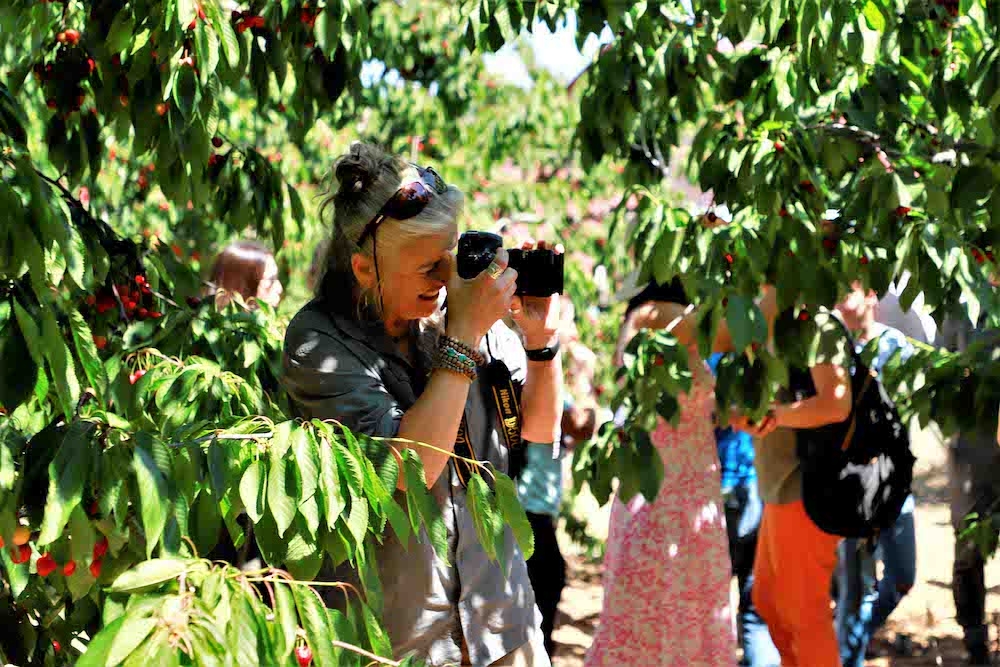 Mihalıççık ilçesinin dünyaca ünlü kirazlarının kırmızı rengiyle güne başlayan 43 fotoğrafçı, meyvelerin tadına bakmayı da ihmal etmediler. Kiraz bahçesini fotoğrafladıktan sonra Lütfiye mahallesindeki lavanta tarlasına giden Eskişehirli fotoğrafçılar, lavantaların üzerlerinde dans eden arıları ve rengârenk kelebekleri dakikalarca farklı biçimde karelediler.