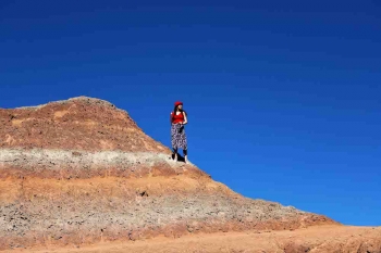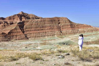 Gezinin final kısmında ise fotoğrafçılar uzmanların 10 milyon yıllık olarak belirledikleri, dev bir göl oluşumunun kuruması sonucu ortaya çıkan renkli katmanların oluşturduğu Gökkuşağı Tepesi’nin muhteşemliği karşısında yorgunluklarını unuttular. Araçların gidemediği bölgeye yaya olarak ulaşan doğa tutkunu fotoğraf severler en iyi kareyi yakalamak için büyük çaba gösterdiler.