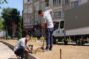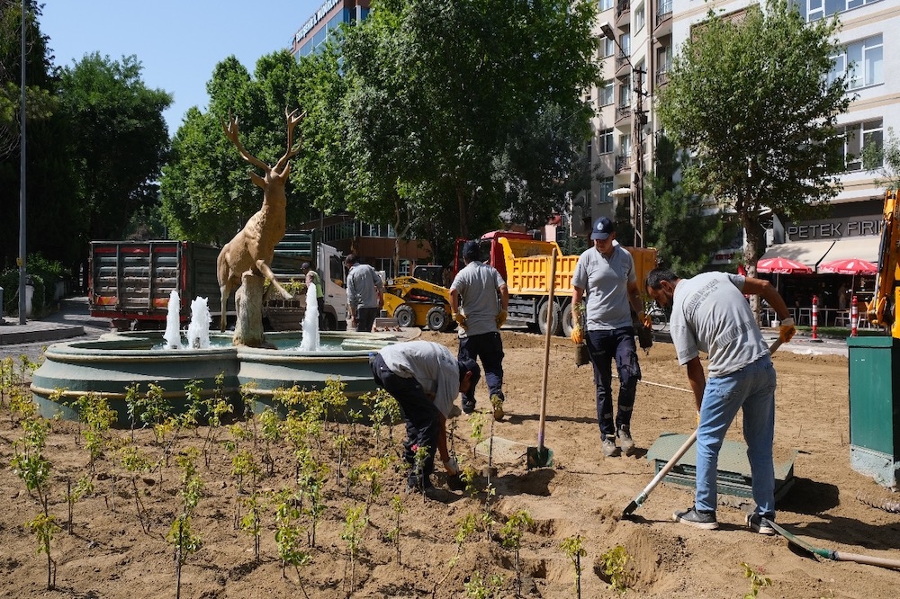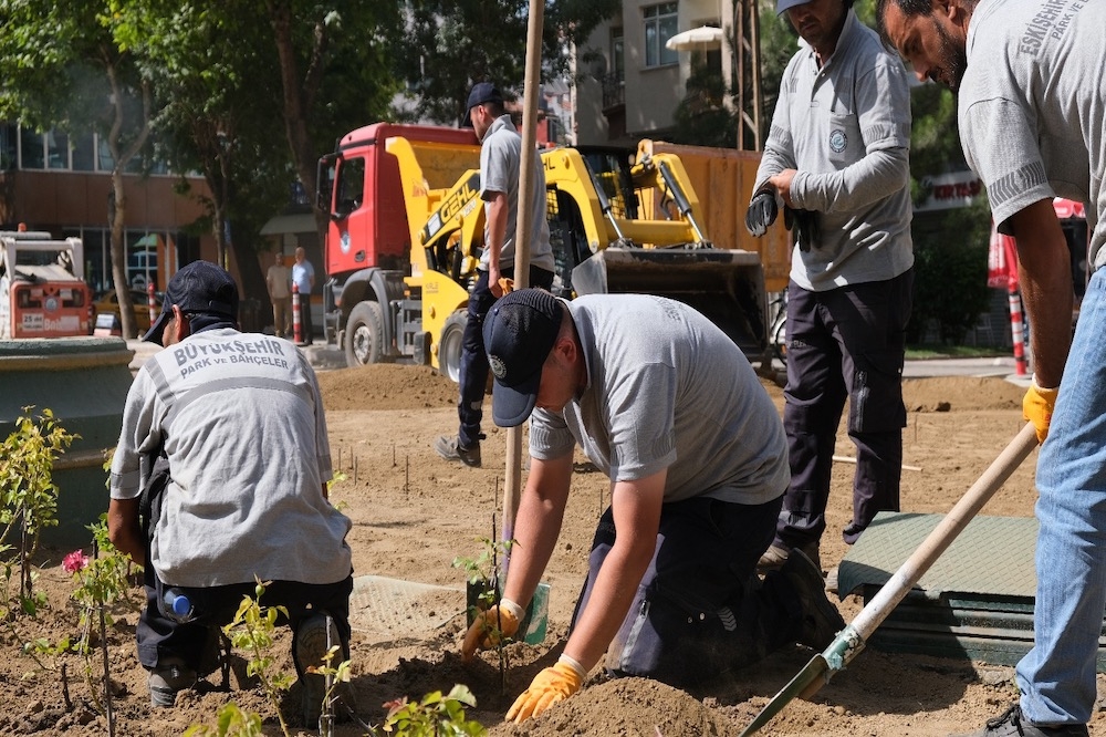 “1. Etap Yol ve Tretuvar Düzenleme Çalışmaları” nedeniyle trafiğe kapatılan Alaaddin Parkı çevresinde çok sayıda personelden oluşan ekiplerce altyapı ve üstyapı çalışmaları gerçekleştiriliyor. Yol Yapım Bakım ve Onarım Dairesi Başkanlığı ekipleri sıcak asfalt ve tretuvar çalışmalarını sürdürürken, Park ve Bahçeler Dairesi ekipleri bölgede peyzaj çalışmaları ile bitki dikimi gerçekleştiriyor.