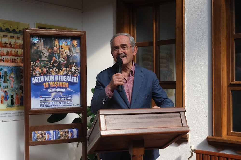 Açılışta konuşan Başkan Büyükerşen, “Bu sergi, çok özel ve gerçekten son derece farklı bir sergi. Arzu, 10 yıldır o kadar güzel bebekler üretti ki; hepsi çok kıymetli. Dünyada oyuncak çok değerlidir. Yaratıcı bir mimar ve fotoğrafçı olan kıymetli eşi çok özel eserler yarattılar. Bu sergideki bebeklerin hikâyeleri vardır. Canlı hissi veren bebekler yapan Arzu’nun kabiliyetine ve yeteneğine diyecek yok. Ne yazık ki; Arzu ve ailesi Karadağ’a yerleşme kararı aldılar. Anadolu’nun ortasındaki bir bebek yaratıcısı aile, bir el sanatları endüstrisine artık yurt dışında devam edecek. Türk kadınının yeteneğini orada da göstereceği için tek teselli noktamız o olacak. Arzu, bebek merakıyla Türkiye’de yeni bir endüstrinin ve keşfin ortaya çıkmasını sağladı. Bebekleri mutlaka bezden yapılıp pamukla doldurmak yerine içine heykelcikler koyup, bezle kaplamayı sağlayan malzemeyi getiren Nurhan hanıma da çok teşekkür ederim. Sergide bebekleri göreceksiniz ve çok beğeneceksiniz. Tebrik ediyorum, hayırlı olsun.” dedi. Arzu Özer de ilk bu yana kendisine her zaman destek olan Başkan Büyükerşen’e teşekkür etti.