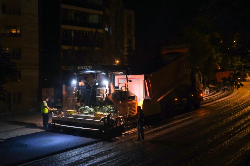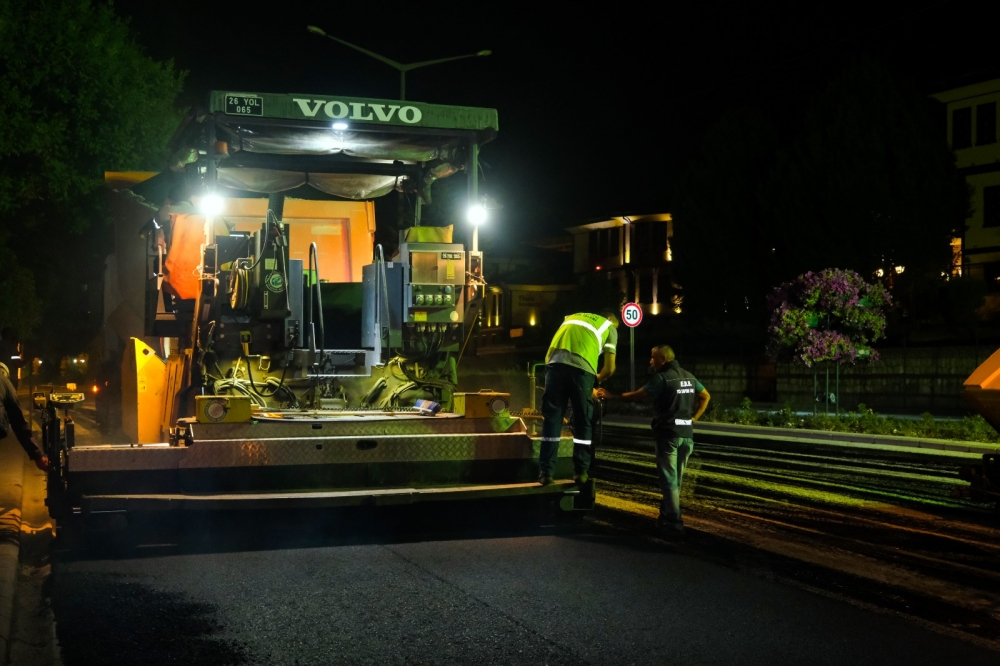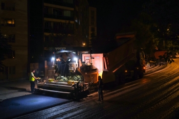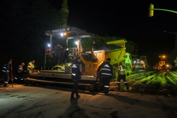 “2. Etap Yol ve Tretuvar Düzenleme Çalışmaları” kapsamında trafik yoğunluğunun olmadığı 22.00-06.00 saatleri arasında ekiplerin gece mesaisini sürüyor.