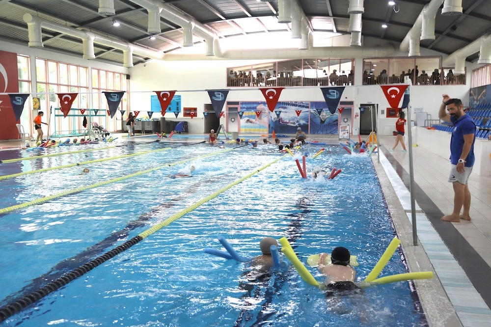 Yüzme bilmeyen 6-17 yaş çocuklar için online alınan kayıtlar sonrası eğitimlere başlayan çocuklar, ilk kulaçlarını atmanın heyecanı ile antrenmanlarını sürdürüyor.