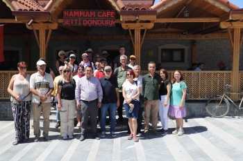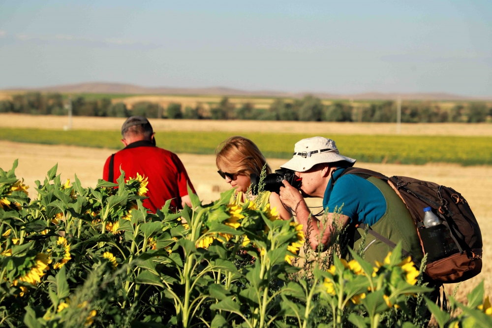 Mahmudiye’de son yıllarda girişimcilerin kurdukları biyoenerji ile elektrik üreten şirket ve topraksız, jeotermal sıcak suyla domates üretimi yapılan dev bir serayı gezen fotoğrafçılar, son olarak ayçiçeği yetiştirilen bir tarlayı ve yanındaki saman balyaları traktöre yükleyen çiftçileri görüntülemek için bol bol deklanşöre bastılar. Mahmudiye Belediye Başkanı İshak Gündoğan da fotoğraf tutkunları ile bir araya gelerek ilçe çarşısında yapılan geziye katıldı. Büyükşehir Belediyesi’nin düzenlediği fotoğrafçılık gezileriyle hem fotoğraf sanatına, hem de ilçelerin bilinmeyen yönlerinin tanıtılmasına katkıda bulunduğunu anımsatan fotoğrafçılar Başkan Yılmaz Büyükerşen’e ve ESMEK yetkililerine teşekkür ettiler.