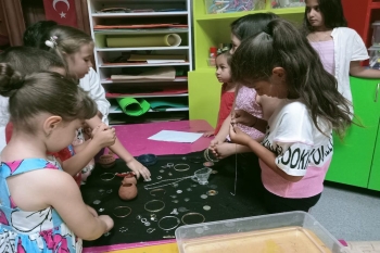 Temmuz ayında başlayan yaz dönemi atölyelerinin ilki olan “Duygulara Yolculuk” çocukların yoğun ilgisi ile gerçekleşti. Atölyede duyguları tanımaya ve ifade etmeye yönelik eğlenceli oyunların ardından Anna Llenas’ın “Boşluk” adlı kitabında Julia’nın içindeki boşluğu doldurmak için denediği yollar üzerine düşünüldü. Sesleri tanıyıp, müziğe nasıl dönüştüğünün görüldüğü ve bir müzik aletinin tasarlandığı “Müzik, Ritim ve Dans” atölyesinde müziğin, ritmin ve dansın evrensel bütünlüğü ile eğlenceli saatler yaşandı.