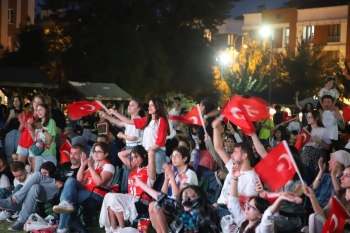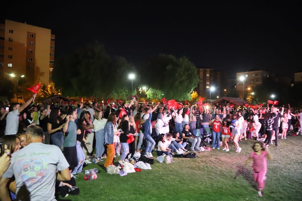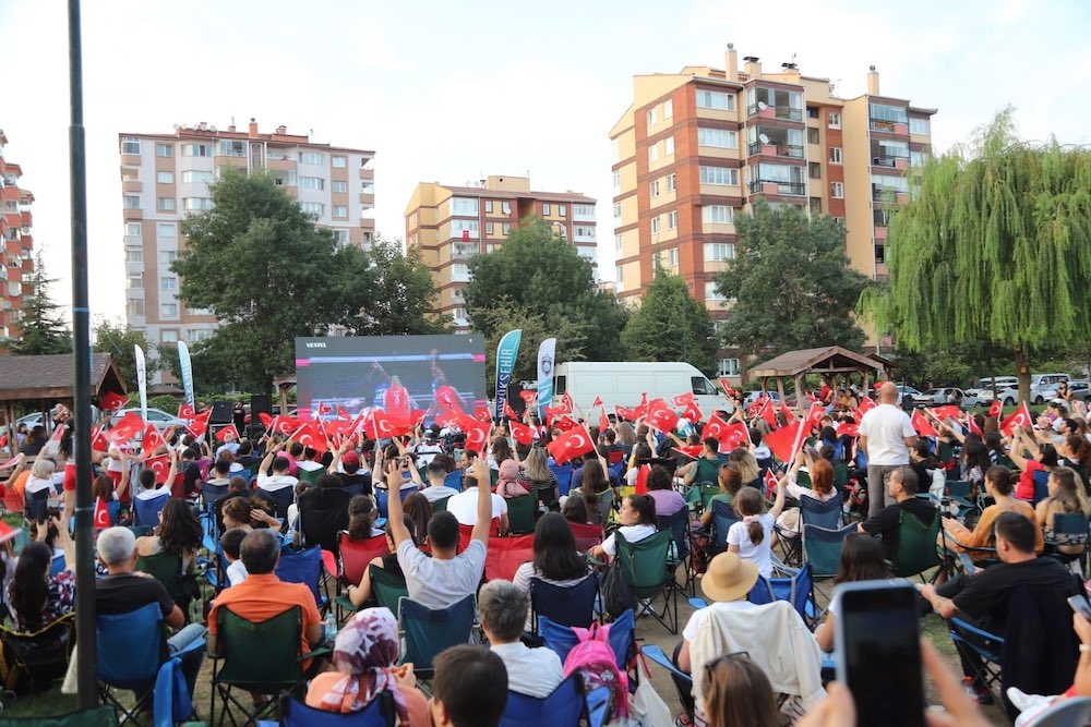 Kum Saha Parkına kurulan dev ekrandan karşılaşmayı izlemek üzere gelen Eskişehirliler maçı Türk bayrakları ve milli takım formalarını giyerek takip ettiler. CHP Eskişehir Milletvekili Utku Çakırözer de nefesleri kesen maçı sporseverlerle birlikte izledi.