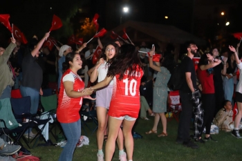 Şampiyonanın yarı final maçı olan İtalya karşısında 2-1 geriye düştüğü maçı 3-2 çevirmeyi başaran A Milli Kadın Voleybol Takımımızı tezahüratları ve alkışları ile destekleyen Eskişehirliler, maçın tamamlanmasıyla birlikte sevinç yumağına döndüler.