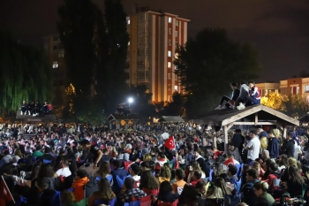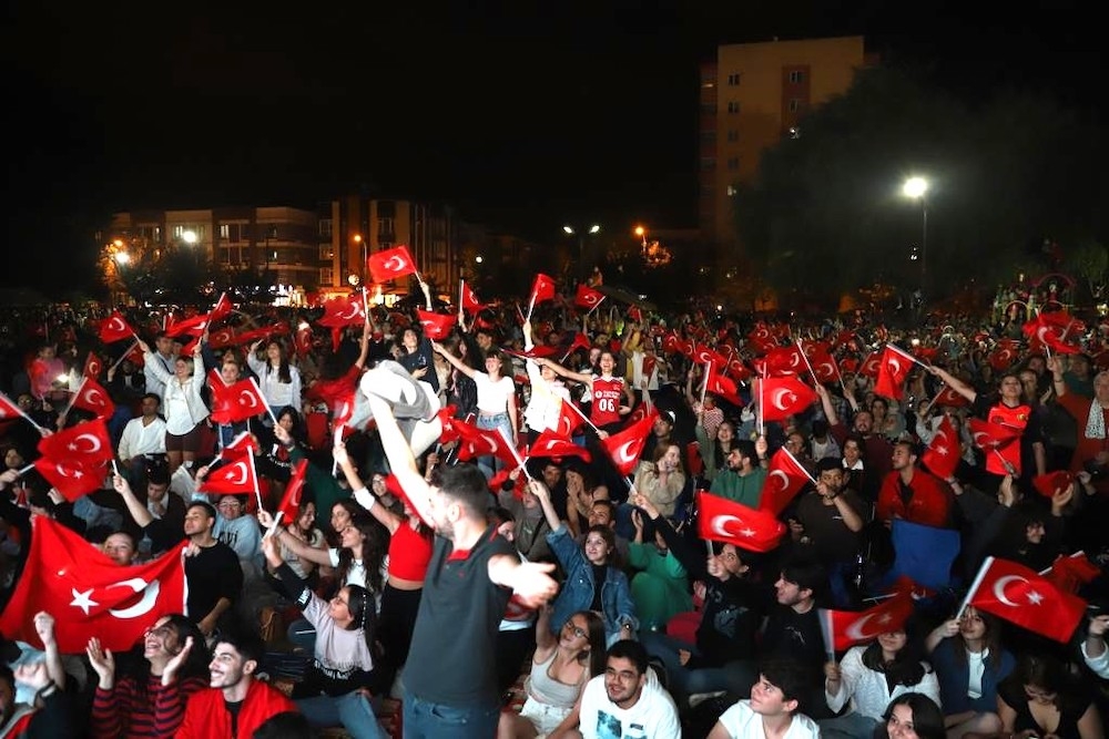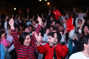 Çeyrek final, yarı final ve final mücadelelerini dev ekrandan açık alanda takip eden Eskişehirliler son yılların en özel görüntülerine imza attılar. Kum Saha Parkına kurulan dev ekrandan karşılaşmayı izlemek üzere gelen Eskişehirliler maçı Türk bayrakları ve milli takım formalarını giyerek takip ettiler.