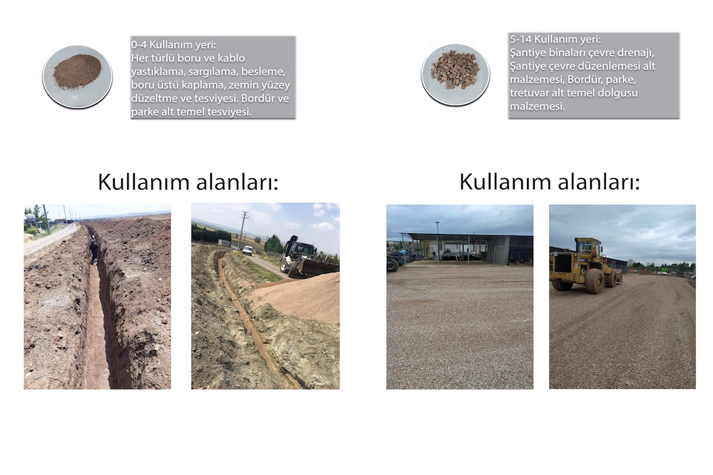 Örnek tesis hakkında bilgi veren Büyükşehir Belediyesi İklim Değişikliği ve Sıfır Atık Dairesi Başkanlığı yetkilileri, “İlimiz merkezinde yürütülen tüm inşaat ve yıkım faaliyetleri sonucunda ortaya çıkan, çevre ve insan sağlığını olumsuz etkileyen asfalt, beton, tuğla, kiremit, seramik vb. inşaat ve yıkıntı atıkları, kurulu kapasitesi 498.000 ton/yıl olan yeni kırma, eleme ve boyutlandırma makinesiyle işlenerek, farklı kalite ve ebatlarda agrega malzeme elde edilmekte ve geri kazanımı sağlanmaktadır. Eskişehir Büyükşehir Belediyesi, kurmuş olduğu bu tesisle çevre kirliliğinin önüne geçerken, aynı zamanda kamu ve özel sektörün inşaat faaliyetlerindeki ham madde talebini büyük oranda karşılamaktadır. Tesiste geri kazanılan inşaat ve yıkıntı atıkları, Belediyelerin yol, otopark, yürüyüş yolu, yeşil alanlardaki sert zemin vb. uygulamalarında, kanalizasyon çalışmalarında ve şehrimizde yeni yapılan inşaatların temel dolgularında kullanılmaya devam etmektedir. Geri kazanılmış ürünler ayrıca, drenaj çalışmaları, elektrik, su, doğalgaz borusu ve kablo döşemelerinde dolgu malzemesi, alt ve üst yapı inşaatlarında, spor ve oyun alanları inşaatları ile diğer dolgu ve rekreasyon çalışmalarında kullanılmaktadır. Kurulan yeni makine ile geri kazanılan agrega ürünlerin kullanım alanlarının artırılması sonucunda, hem ekonomiye fayda sağlanmakta, hem çevresel kirliliğinin önüne geçilmekte, hem de doğal kaynaklarımız korunmaktadır.” dediler.