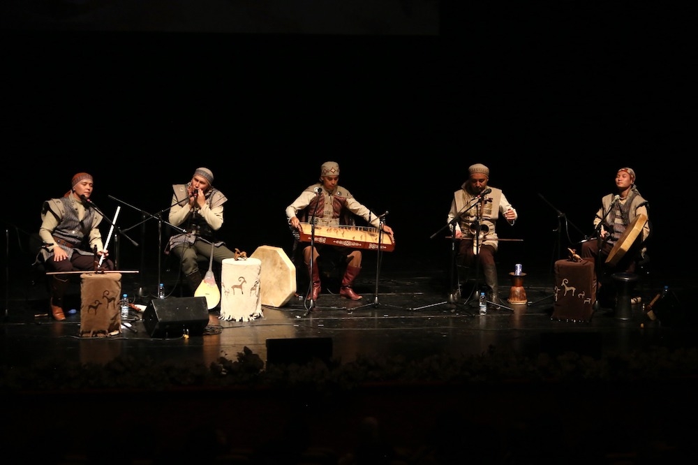 Atatürk Kültür Sanat ve Kongre Merkezi’nde sahne alan grup dinleyicilerin yoğun ilgisini topladı. 2008 yılında Kazakistan’da konservatuvar öğrencilerinin kurduğu ekip beş kişiden oluşuyor ve Kazakistan’ın yerel çalgıları ile kendi yerel müziklerini icra ediyor. Topluluk, otuza yakın halk çalgısını konser boyunca dönüşümlü olarak çaldı.