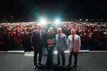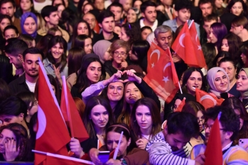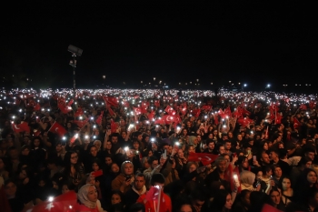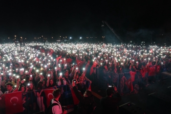 Konuşmaların ardından Büyükerşen’in çiçek takdim ettiği Gülşen, “Türkiye’nin aydınlık yüzleri sevgili Başkanlara çok teşekkür ediyorum.” dedi. Başkanlar ve Gülşen, cep telefonlarının ışıklarını açarak Türk bayraklarını dalgalandıran on binlerce Eskişehirli ile birlikte sahneden özçekim yaptılar.