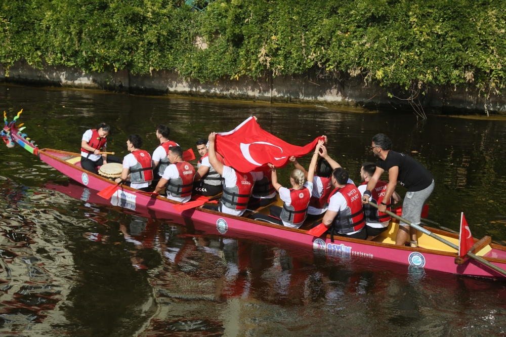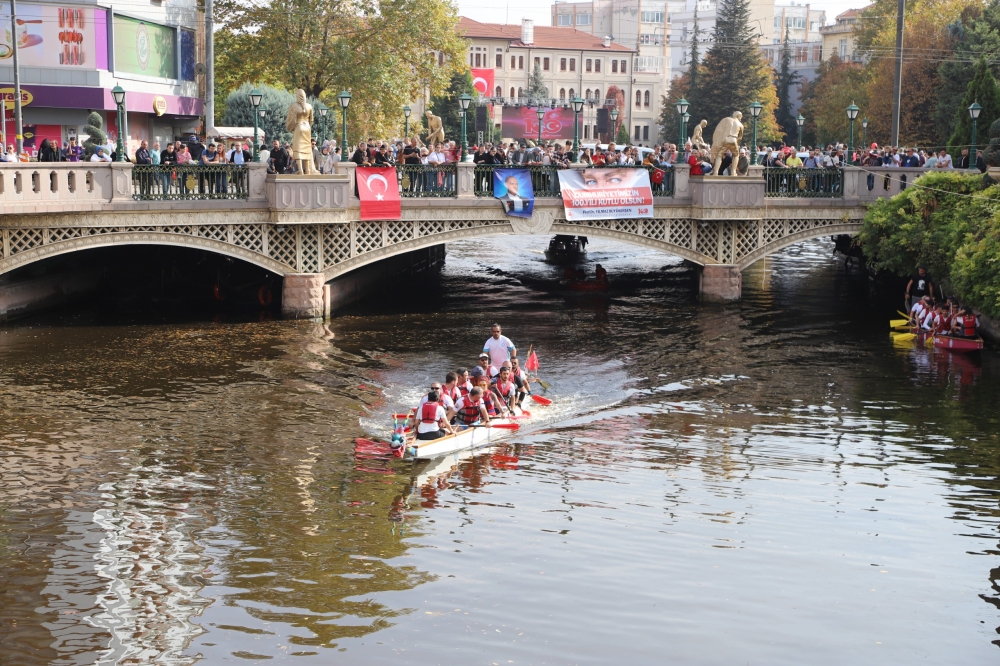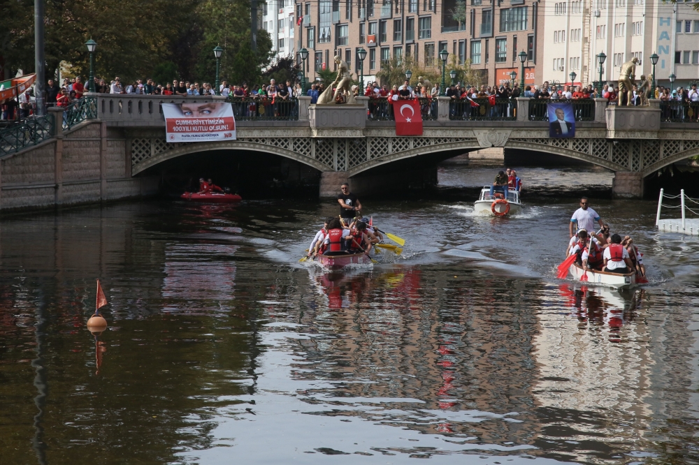 Eskişehir Büyükşehir Belediyesi tarafından Cumhuriyet’in 100. Yılı onuruna düzenlenen “100. Yıl Cumhuriyet Kupası Dragon Yarışları” büyük heyecana sahne oldu. Porsuk Çayı’ndaki yarışlara Eskişehirliler büyük ilgi gösterirken sporcular kürekleri Cumhuriyet’in 100. Yılı için çektiler.