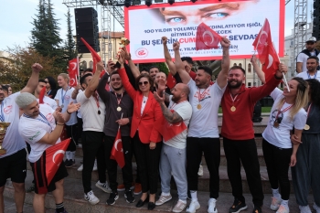 Ödül töreni sonrası sporcular ellerinde Türk bayraklarıyla marşlar söylerken, Cumhuriyetimizin 100. Yılında yarışmanın mutluluğunu yaşayarak 29 Ekim Cumhuriyet Bayramını coşkuyla kutladılar.
