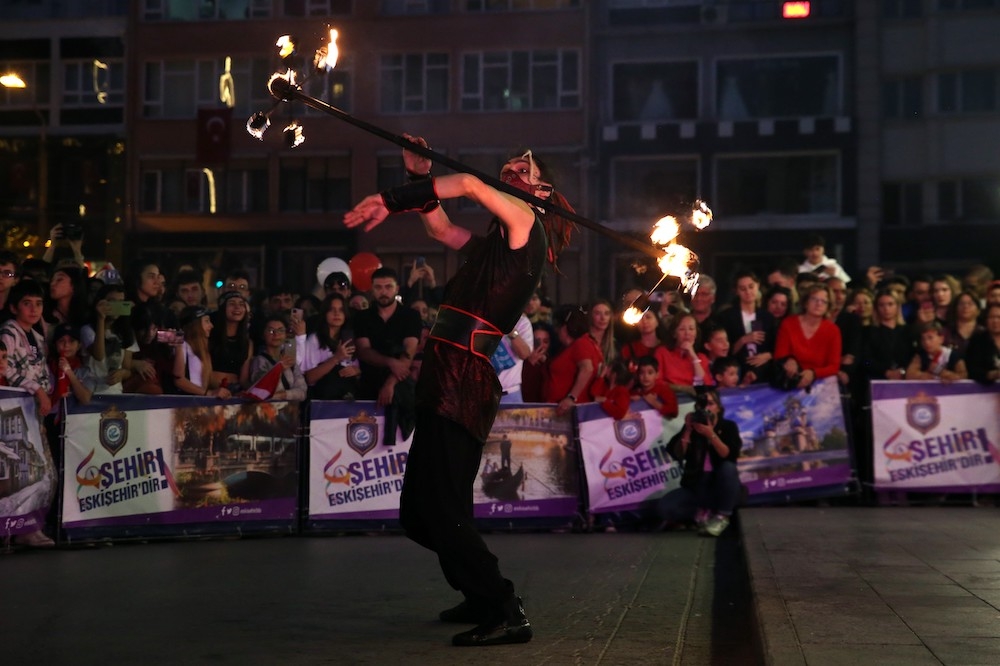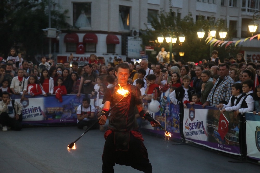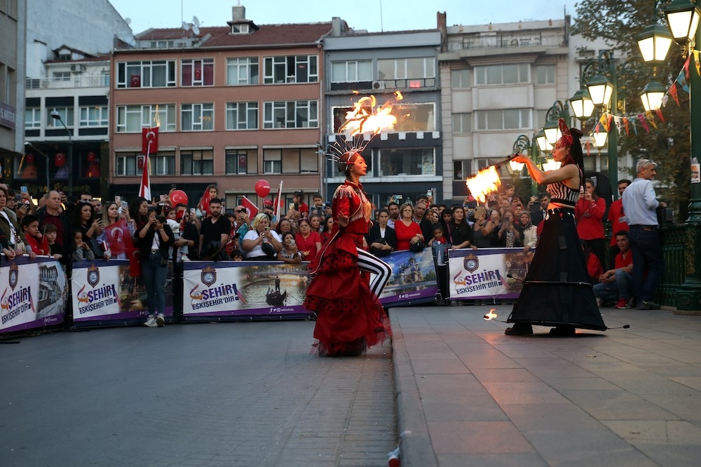 Cumhuriyetimizin kuruluşunun 100. Yılı kutlamaları nedeni ile Cumhuriyet Bayramı ile aynı günde başlatılan festival, şehir merkezinde yapılan kortej yürüyüşü ile başladı. Eskişehir Büyükşehir Belediye Başkanı Prof. Dr. Yılmaz Büyükerşen, Eskişehirli Milletvekilleri ve Büyükşehir Belediyesi yetkililerinin de katıldığı, Eskişehirli vatandaşların yoğun ilgi gösterdiği yürüyüş, Şehir Tiyatrosu çalışanlarının giydiği renkli kıyafetlerle, masal kahramanları, bandolar, izciler, öğrenciler ve Eskişehir’in coşkulu vatandaşları eşliğinde şehir merkezinde renkli görüntülerle tamamlandı. Yürüyüş sonrası, Köprübaşı Mevkii’nde halka açık olarak festivalin açılış gösterisi olan “Jaya Flow” ekibinin Sonsuz Ateş adlı ilgi çekici ateşli akrobasi gösterisi izlendi.