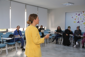 3.Grupta, Emek ve 71 Evler Mahallelerinde ikamet eden 10 Türk ve 10 mülteci kadının katıldığı eğitimler 5 hafta sürecek. Eğitimlerin başlangıcında bir konuşma yapan Hale Kargın, “Sizleri burada görmekten çok mutluyuz. Burası sizin eviniz. Merkezdeki tüm hizmetlerimiz ücretsiz olarak sunuluyor. Gerek bu eğitimler gerekse farklı konularda sorunlarınız için uzman arkadaşlarımıza danışabilirsiniz. Tekrar hoş geldiniz.” dedi.