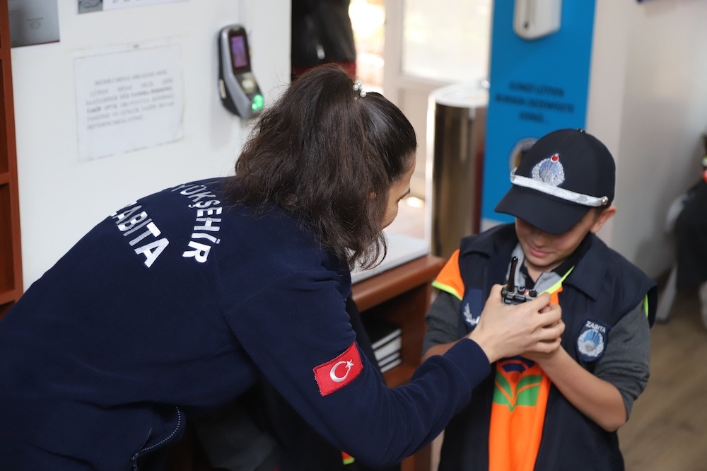 Burada zabıta yelek ve şapkalarını giyen öğrenciler, telsizden anons yaparak zabıta büyüklerine çalışmalarında kolaylıklar dilediler. Büyükşehir Belediyesi Zabıta Dairesi Başkanı Melek Ceviz, geleceğimizin teminatı öğrencileri ağırlamaktan büyük mutluluk duyduklarını ifade etti.