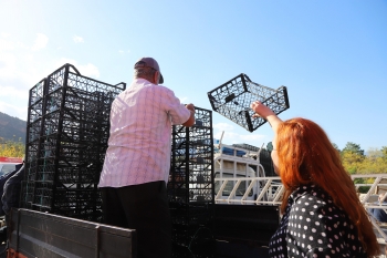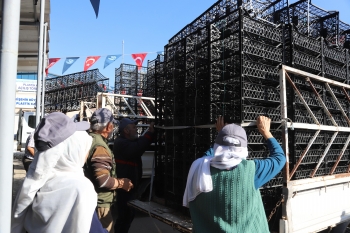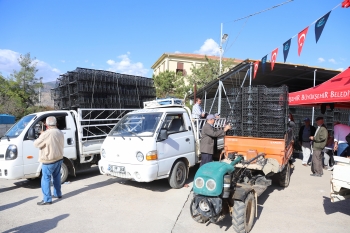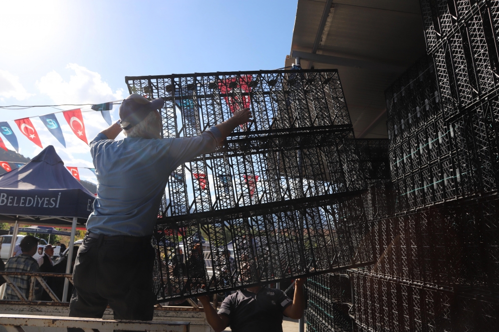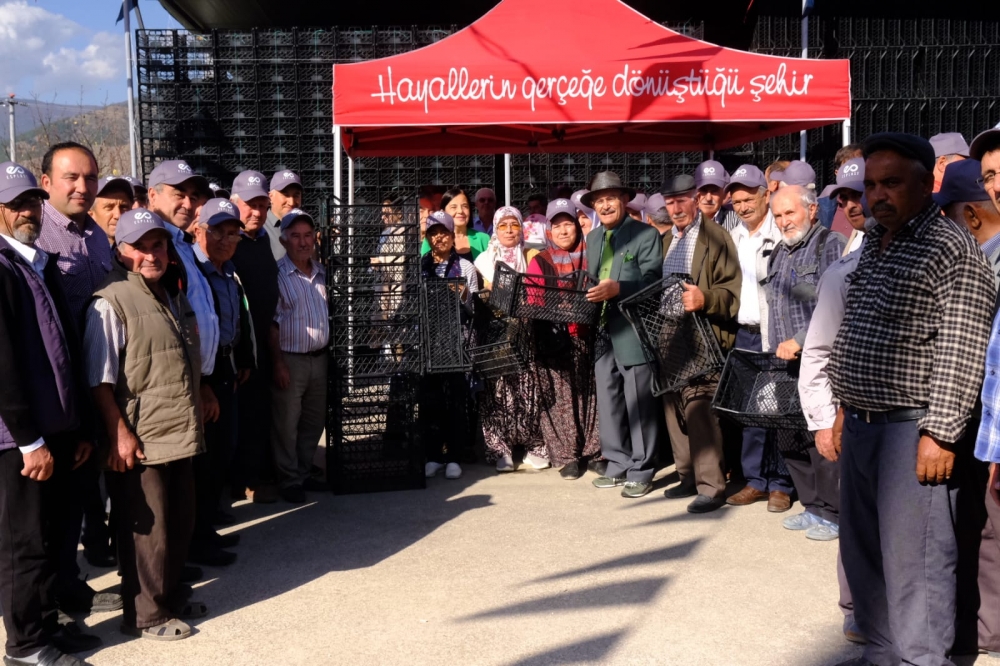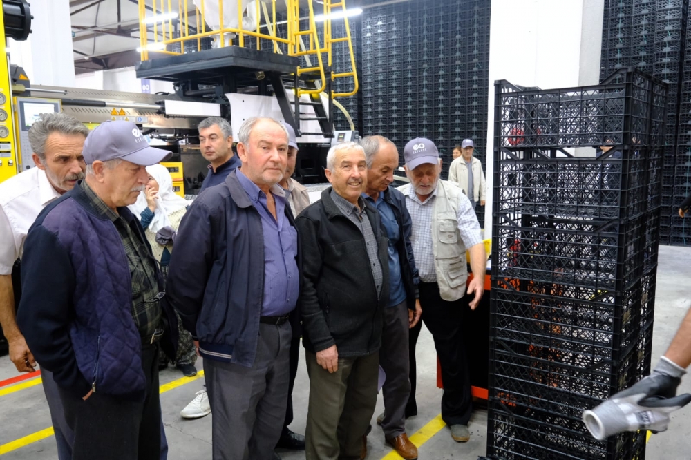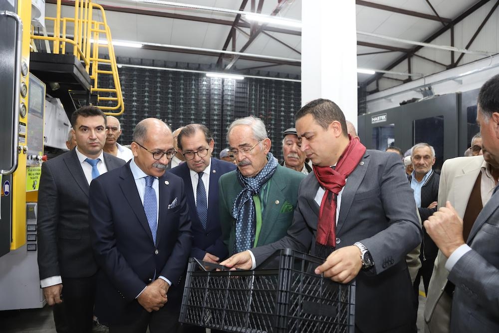 Fabrikanın açılışına özel, plastik kasa desteği projesine başvuran 330 üreticiye de ücretsiz kasa verilirken üreticiler plastik kasaları kamyonet ve traktör römorklarına yükleyerek teslim aldılar.