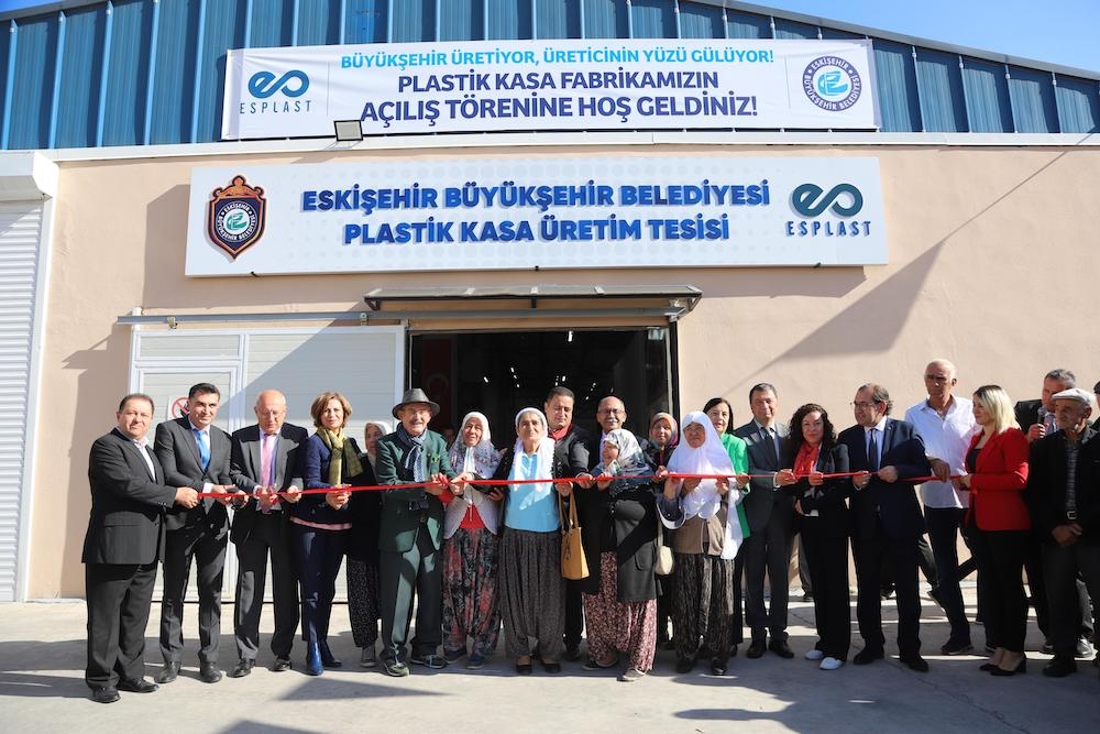Eskişehir Büyükşehir Belediyesi’nin, Mihalgazi ve Sarıcakaya ilçelerinde örtü altı tarım ile geçimini sağlayan üreticilerin ürün taşıma ve depolamada yaşadıkları plastik kasa sorununu çözecek Plastik Kasa Üretim Tesisi (Esplast) düzenlenen görkemli törenle hizmete açıldı.