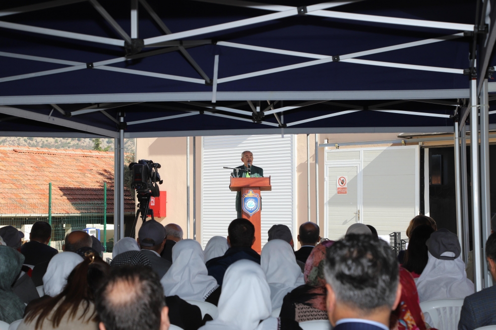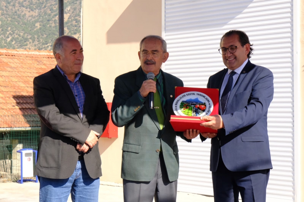 Açılış konuşması sonrası Sarıcakaya ve Mahalleleri Sosyal Yardımlaşma ve Kültür Derneği Başkanı İbrahim Eldem tarafından Başkan Büyükerşen’e tesisin bölgeye kazandırılması dolayısıyla teşekkür plaketi takdim edildi.