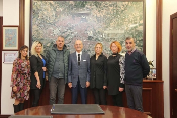 Bir diğer ziyarette ise KESK’e bağlı Tüm Bel Sen’in 8’inci Eskişehir Olağan Genel Kurulu ile başkanlığa seçilen Gerçek Bilyaz İzgü ve yönetim kurulu üyeleri Büyükerşen ile görüştü. Yeni yönetimini tanıtan ve yapacakları çalışmalardan bahseden İzgü, Başkan Büyükerşen’e nazik misafirperverliği için teşekkür etti. Büyükerşen de İzgü ve yönetim kuruluna çalışmalarında üstün başarılar diledi.