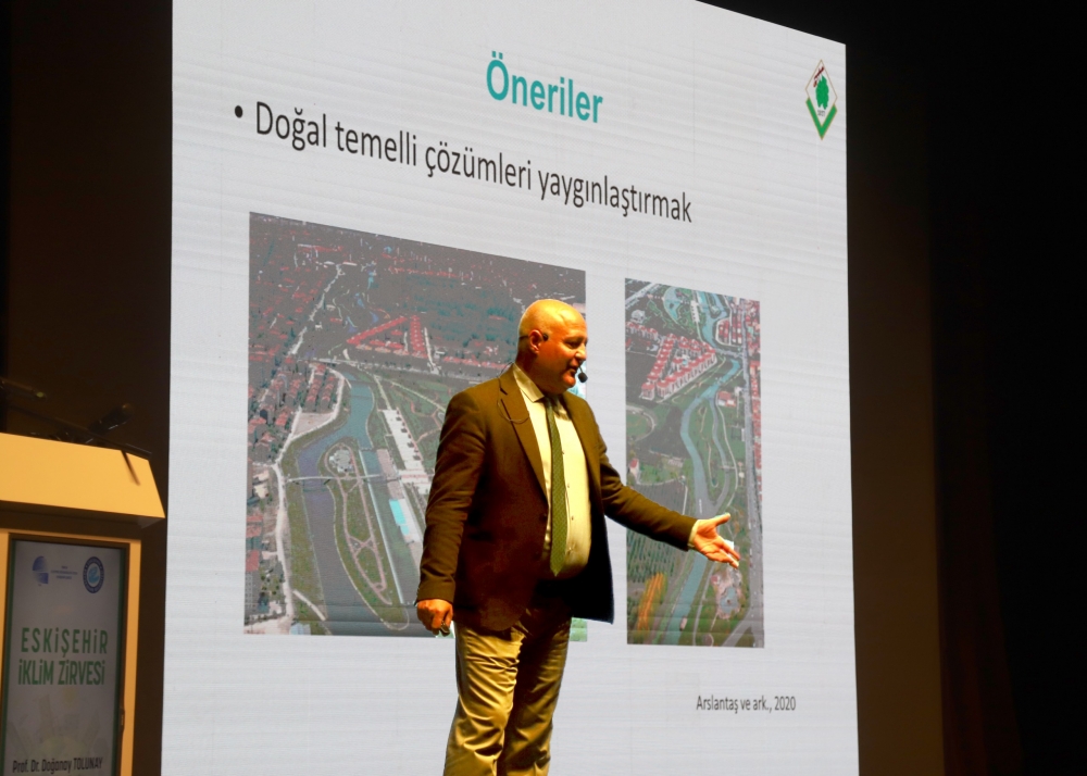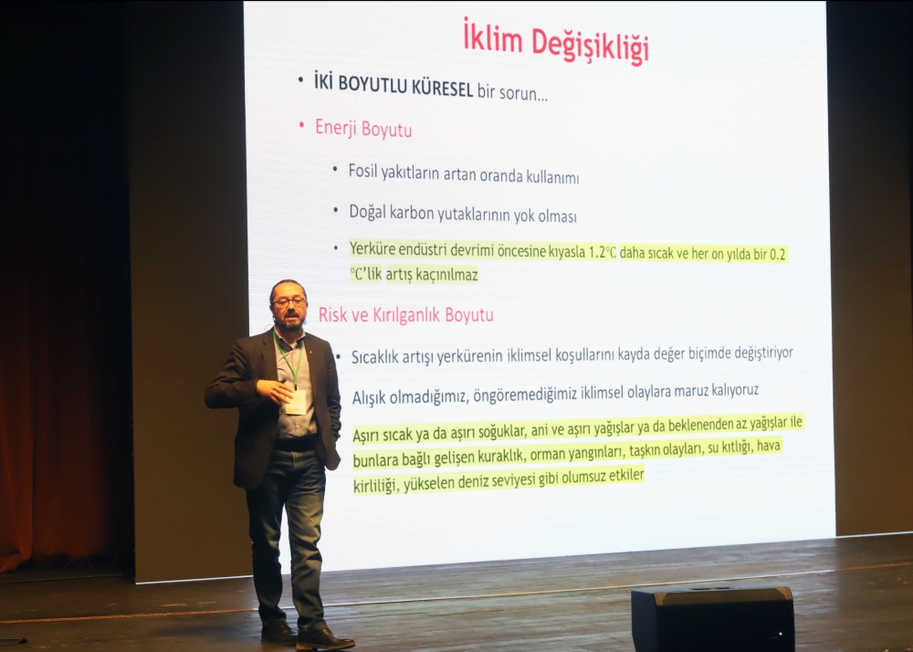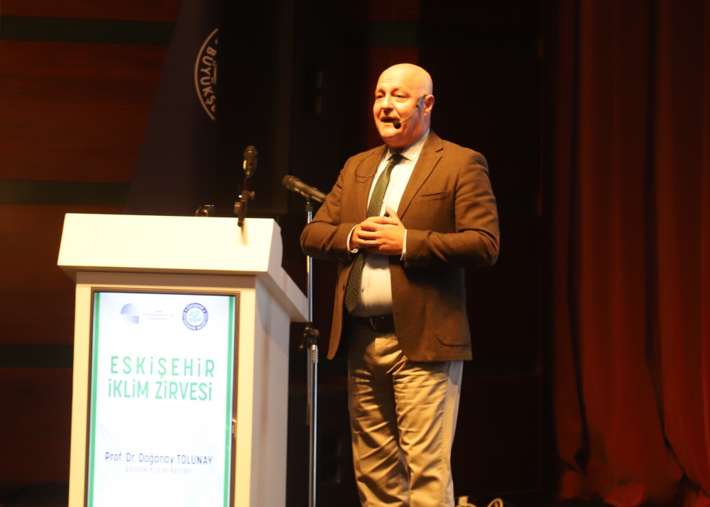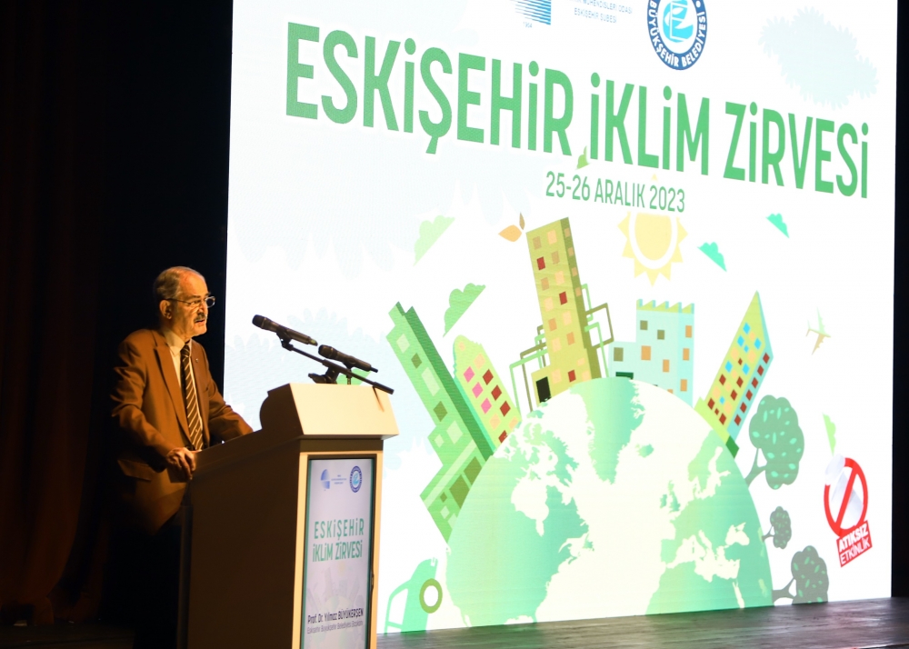 Eskişehir Büyükşehir Belediye Başkanı Prof. Dr. Yılmaz Büyükerşen yaptığı konuşmada, “Günümüzde iklim değişikliği, gezegenimizin karşı karşıya olduğu en büyük meydan okumalardan biridir. Artan sera gazı emisyonları, ekosistemlerin bozulması, aşırı hava olayları, buzulların erimesi gibi etkileriyle iklim krizi yaşamlarımızı, ekonomimizi ve doğal dengeyi derinden etkilemektedir. Eskişehir Büyükşehir Belediyesi olarak bu sorunla mücadelede acil eyleme geçilmesi, kalıcı ve sürdürülebilir politikalar üretilmesi gerektiğine inanıyoruz. Ancak bu politikaların bireysel çabaların ötesine geçmesi gerektiğini, uluslararası iş birliği ve koordinasyonla hareket edilmesi gerektiğini de biliyoruz. Sadece bir kentin veya bir ülkenin çabaları, bu meydan okumaya karşı yeterli olmayacaktır. Küresel boyutta bir uyum ve dayanışma ile hareket edilmeli, kararlı ve etkili politikaları hızlıca hayata geçirmeliyiz.” dedi.