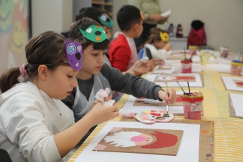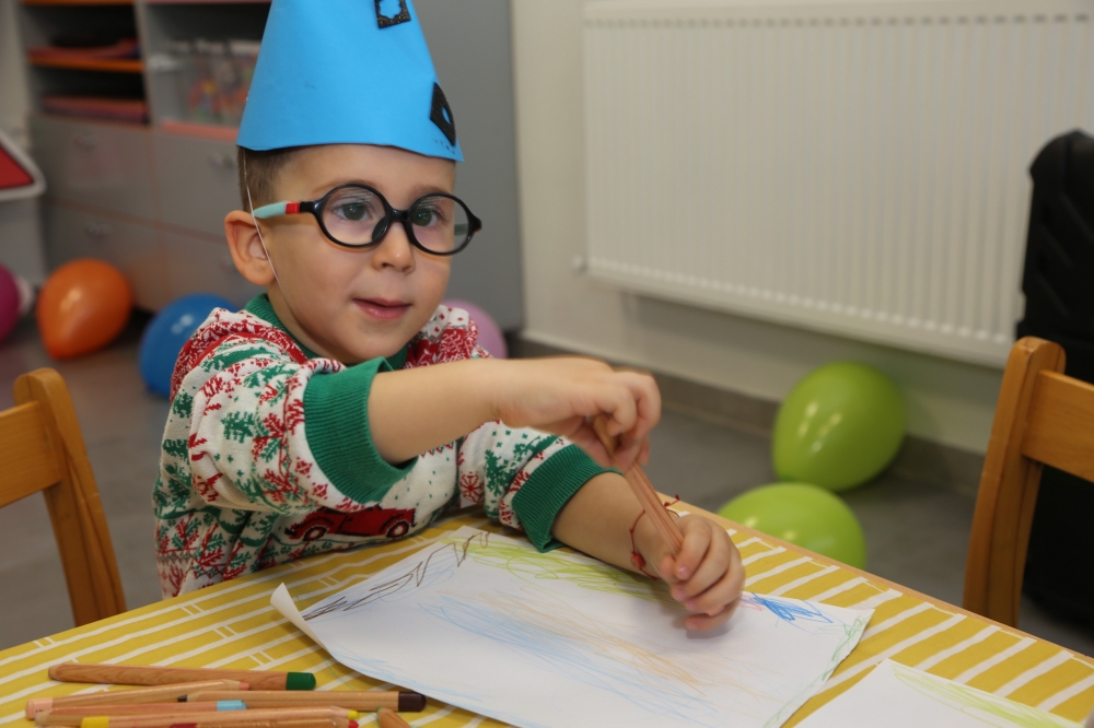 İlk olarak Çocuk Hakları Birimi’nde yeni yıl kutlaması gerçekleştirildi. Şapkalar ve maskelerle sulu boya resim atölyesinde yeni yıl resimlerini oluşturan minikler daha sonra üzerinde “Hoş Geldin 2024 Mutlu Yıllar” yazılı pastayı kestiler.