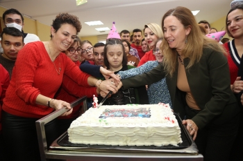 Zihinsel Engelli Gündüz Yaşam Merkezi’nden hizmet alan özel bireyler de düzenlenen etkinlikte yeni yılın gelişini kutladılar. Müzikler eşliğinde oyunlar oynayan özel bireyler, eğlence sonrası Sosyal Hizmetler Dairesi Başkanı Hale Kargın ile birlikte yeni yıl pastasını kestiler. Kargın ayrıca özel bireylere yeni yıl hediyelerini takdim etti.