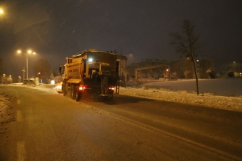 Eskişehir Büyükşehir Belediyesi beklenen kar yağışı nedeniyle gereken önlemleri alarak ekipleri göreve hazır hale getirirken yağışla birlikte şehrin dört bir yanında aralıksız çalışma başlatıldı.