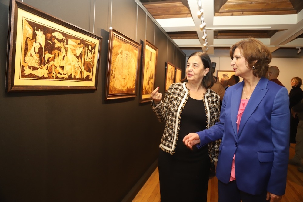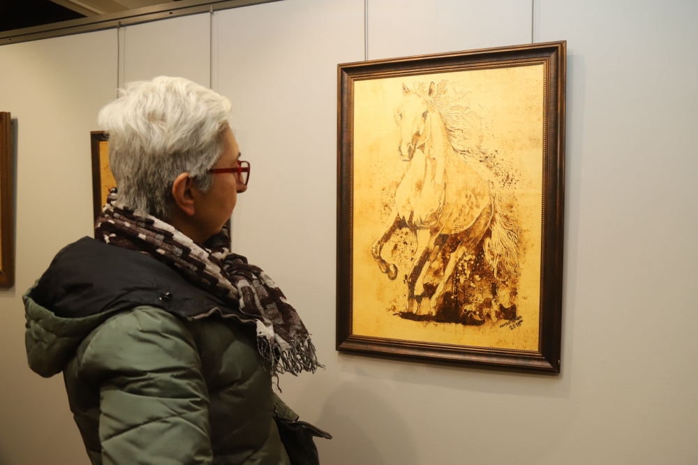 Açılış sonrası protokol üyeleri ve sanatseverler eserleri yakından incelediler.