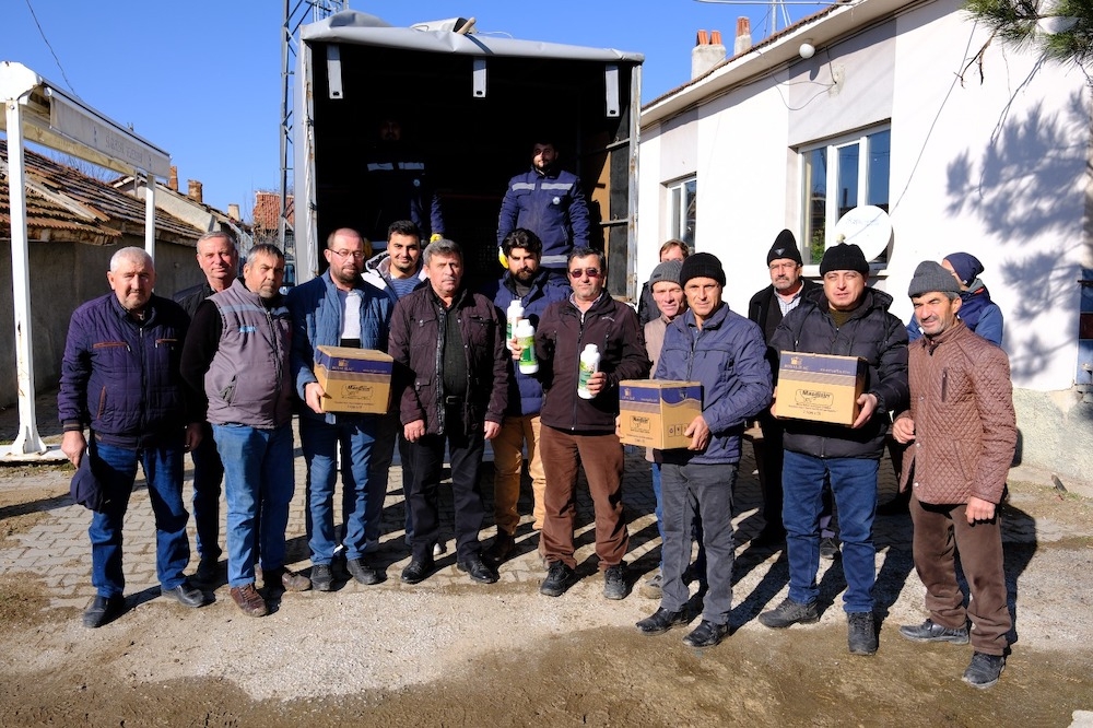 Bu kapsamda Sivrihisar’ın Gerenli mahallesinde faaliyet gösteren ve destek başvurusu yapan 25 hayvan yetiştiricisine mineral blok ile mastitis önleyici solüsyon desteği verildi.