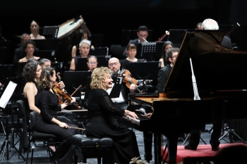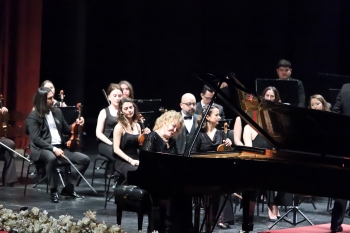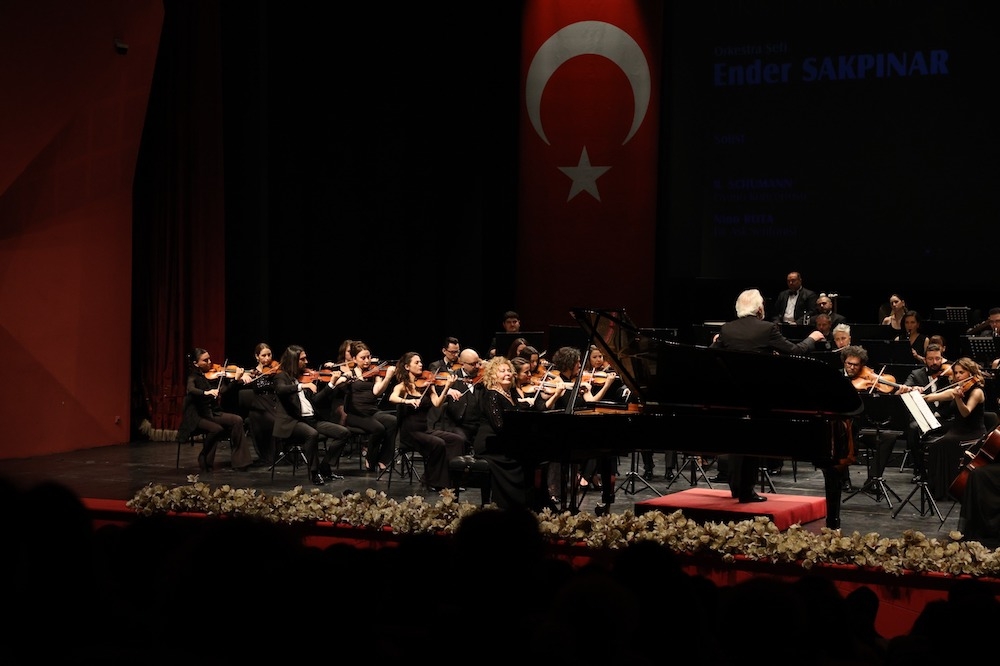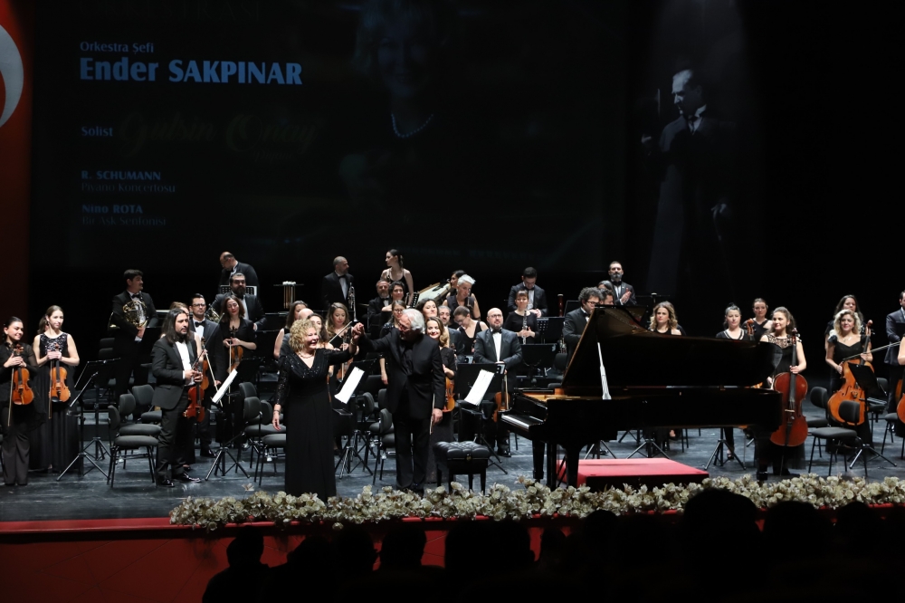 Her hafta yenilenen programıyla müzikseverlerle bir araya gelen Senfoni Orkestrası, bu hafta dünyaca ünlü piyano sanatçısı Gülsin Onay’ı sahnede ağırladı. Ünlü Alman besteci R. Schumann’ın La Minör Piyano Konçertosu’nu ustalıkla icra eden Onay, dinleyicileri adeta büyüledi. Dinmek bilmeyen alkışlardan dolayı üç kere bis yapan Onay, konserin ardından imzalı cd’lerini hayranlarıyla paylaştı.