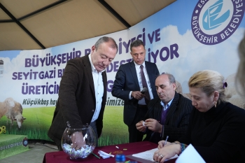 Büyükşehir Belediyesi ve Seyitgazi Belediyesi arasında imzalanan Küçükbaş Hayvan Yetiştiriciliğine ilişkin iş birliği protokolü kapsamında Seyitgazi ilçesinde noter huzurunda kura çekim töreni düzenlendi.