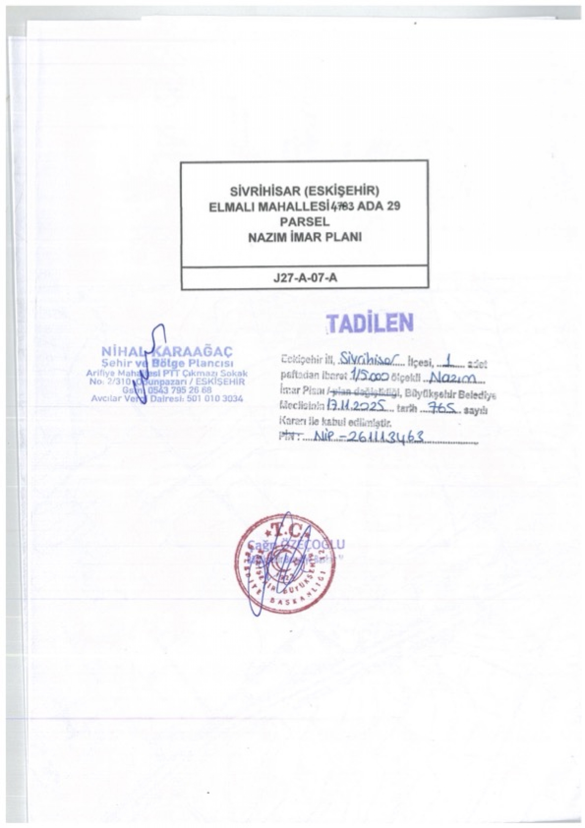 | Karar No: 765 | İlçe: Sivrihisar | Mahalle: Elmalı Mahallesi |