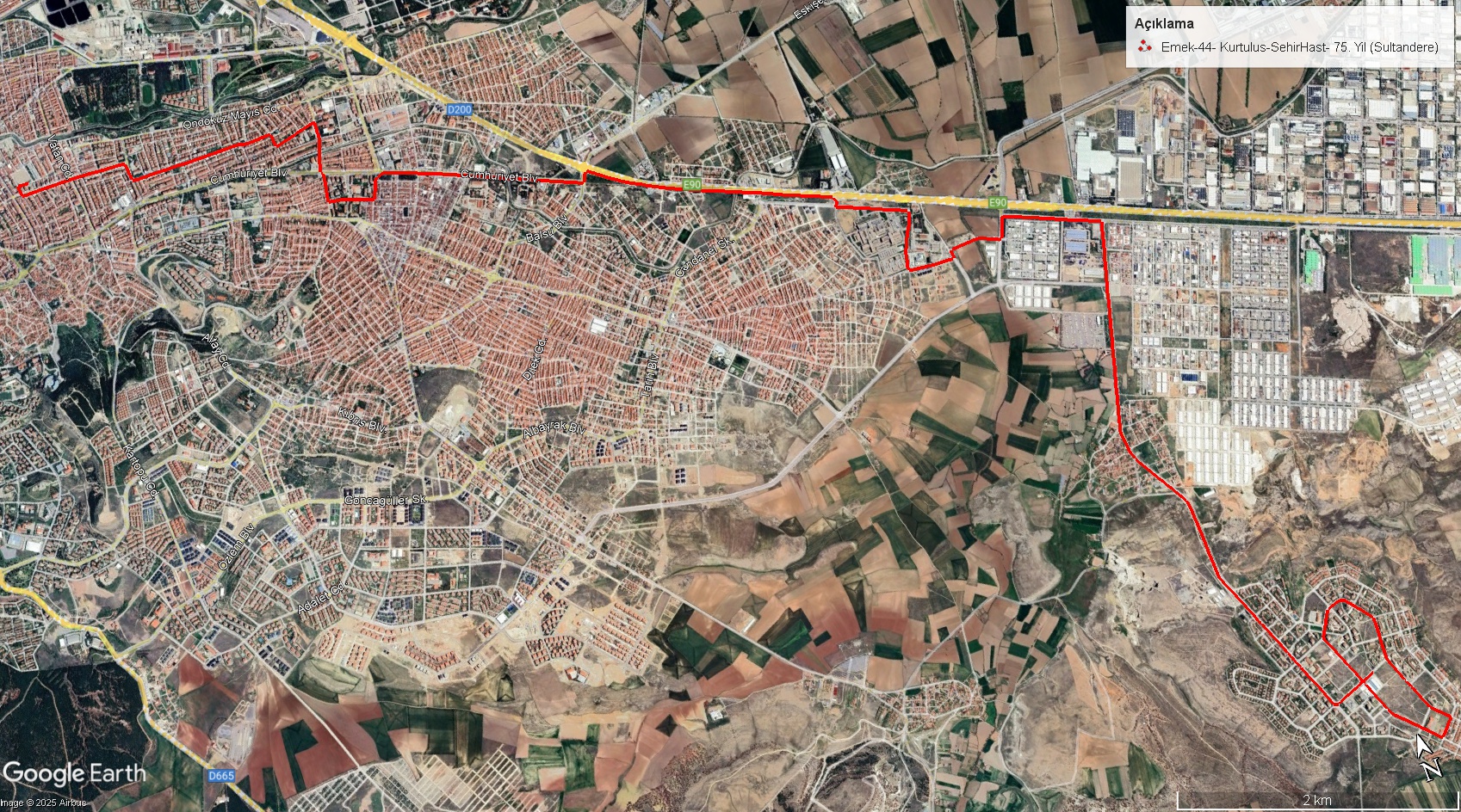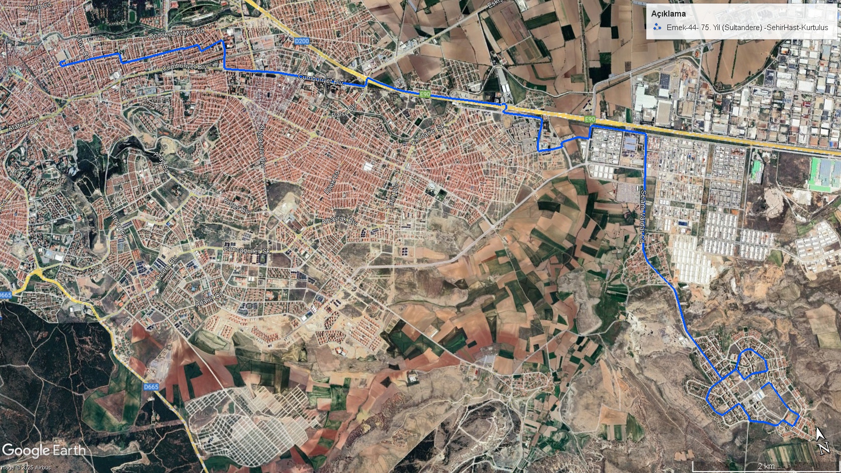 Şentürk Sk, İnal Sk, Ziyapaşa Cd, Sarper Cd, Ulus Cd, Dede Efendi Cd, Gülcan Sk, Laleler Sk, Canay Sk, Sevinç Cd, 1. Dökümcüler Sk, 1. Soğuk Demirciler Sk, Cumhuriyet Bulvarı, Balsu Blv, D200 Çevreyolu, Şehir Hastanesi, Akçeşme Sk, Dedeoğlu Sk, Işıkköy Sk, Kelkit Sk, 2. Küçük Organize Sanayi Cd, 1. Küçük Organize Sanayi Cd, Selami Vardar Blv, Gün Sazak Cd, Abdi İpekçi Cd, Vali Sami Sönmez Cd, Mete İnselel Sk, Uğur Mumcu Cd, Abdi İpekçi Cd, Gün Sazak Cd, Pazaryeri önü son durak